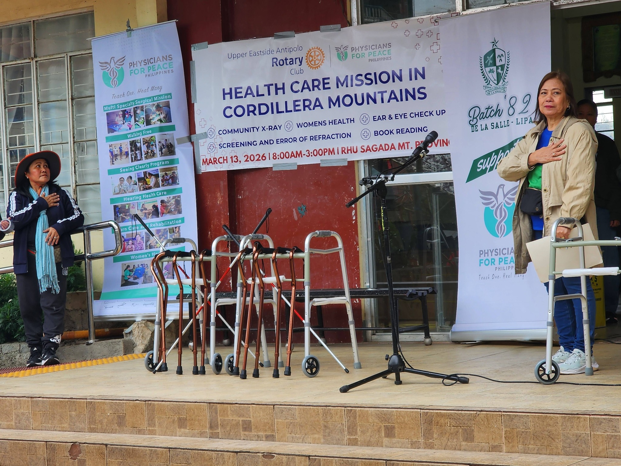 That barrier got a little smaller recently. Physicians for Peace Philippines, together with the Rotary Club of Upper Eastside Antipolo District 3800, the Local Government Unit of Sagada, with support from Baguio General Hospital and the Philippine Tuberculosis Society – Tuguegarao Branch, brought a full healthcare mission up into these mountains, reaching residents who, for many of them, had been waiting a very long time for someone to come to them. Co-sponsored by De La Salle Lipa Batch ’82 and with mobility devices donated by The Church of Jesus Christ of Latter-day Saints, the mission touched every dimension of care that communities in remote geographies often go without: vision, hearing, tuberculosis screening, women’s health, community X-ray, and mobility assistance.